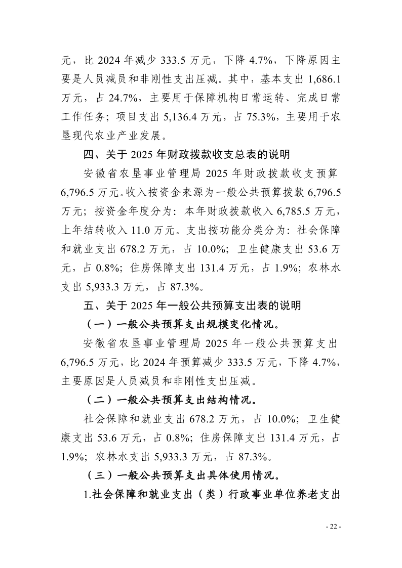安徽省农垦事业管理局2025年部门预算