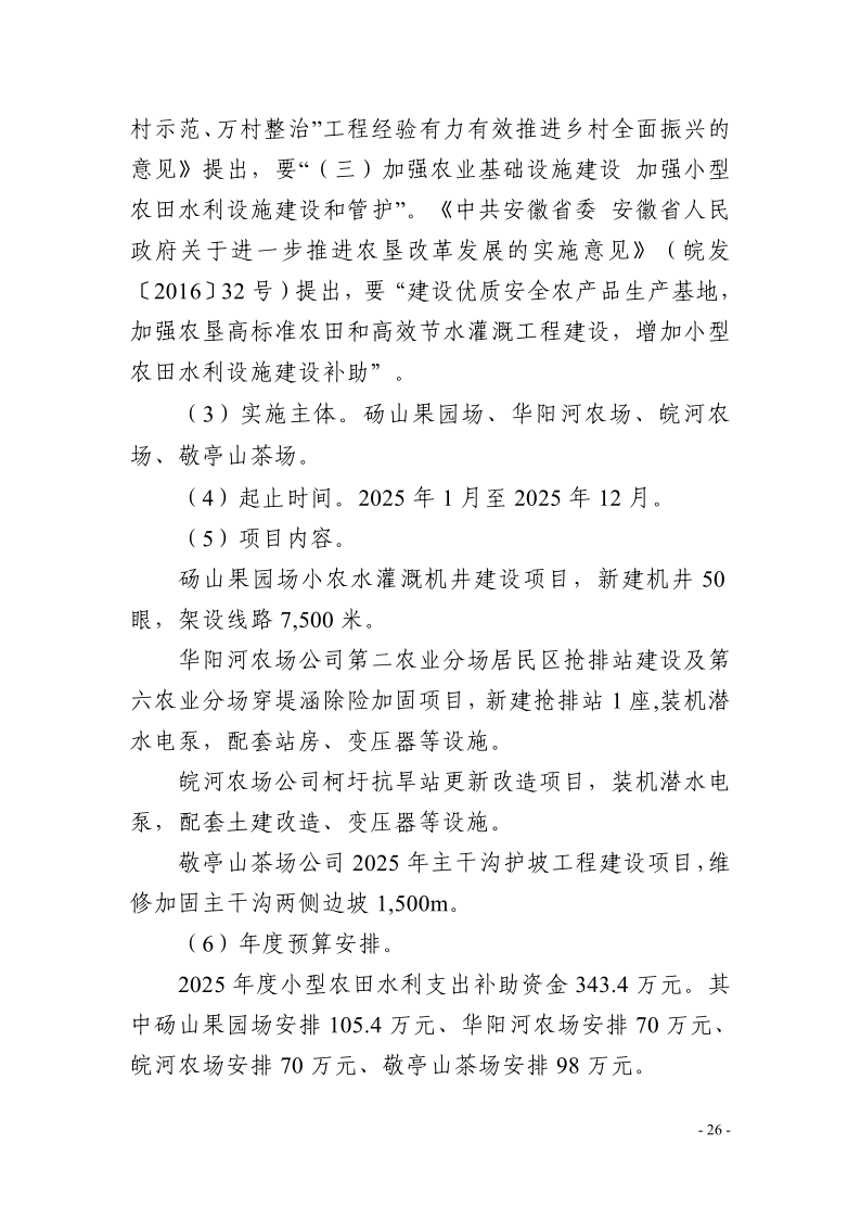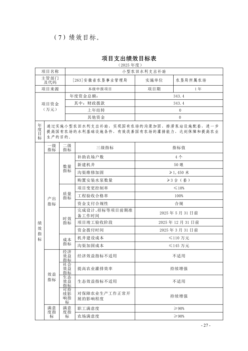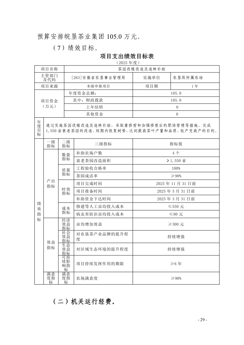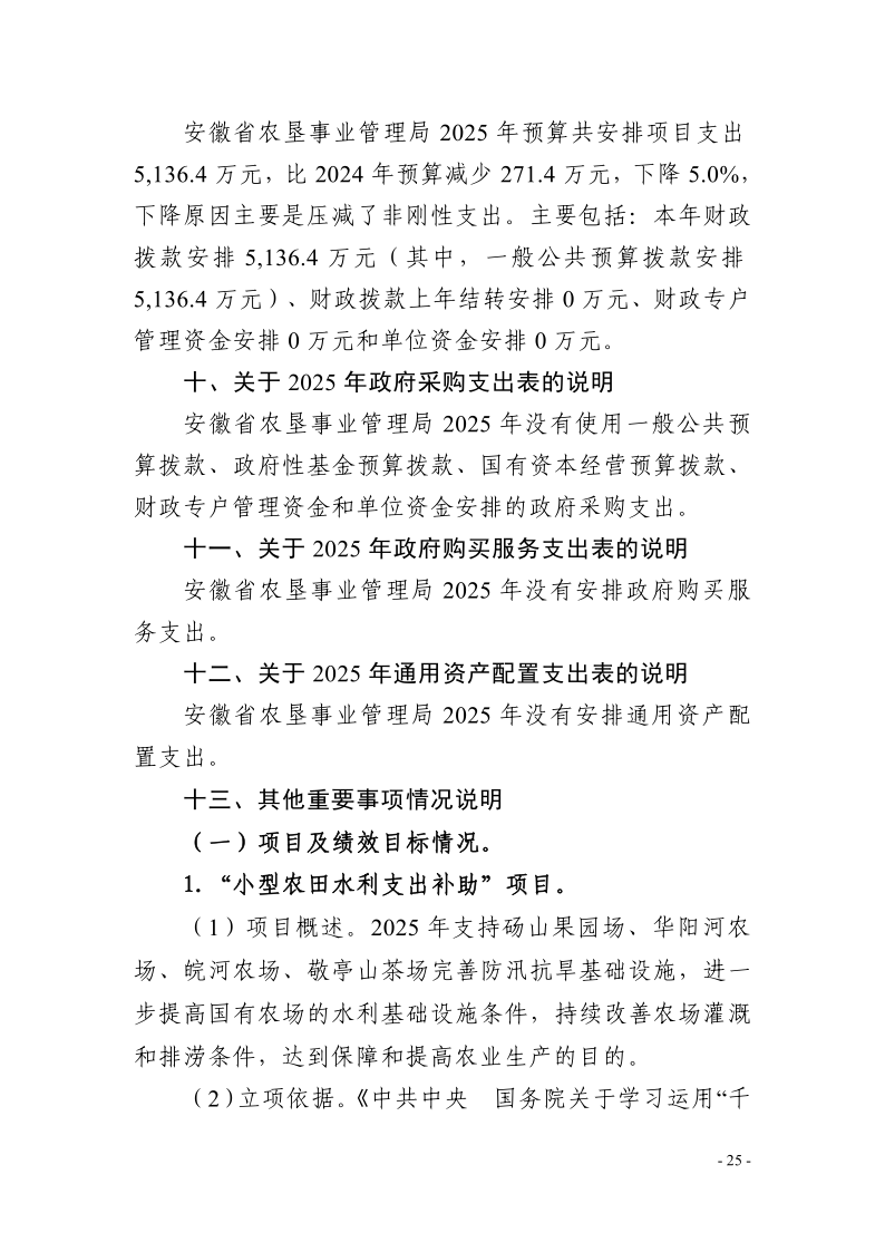 安徽省农垦事业管理局2025年度项目支出绩效目标